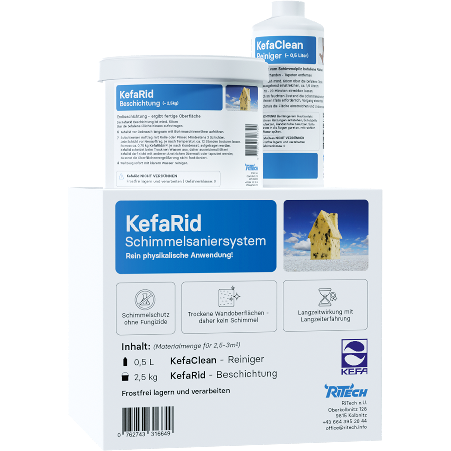 KefaRid gibt es auch im praktischen 2-in-1 Set für zu Hause. Garantierter Schimmelschutz für die eigenen vier Wände.